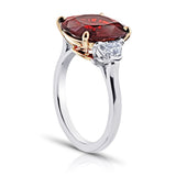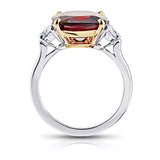 5.86 carat Cushion Red Spinel with two Half Moon Diamonds in a platinum and 18k rose gold ring