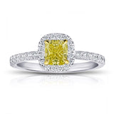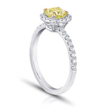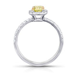 0.83 Carat Cushion Yellow Fancy Diamond and Diamond Platinum Ring