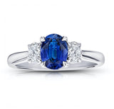 1.21 Carat Oval Blue Sapphire with 0.37 Carat Diamonds set in a Platinum Ring