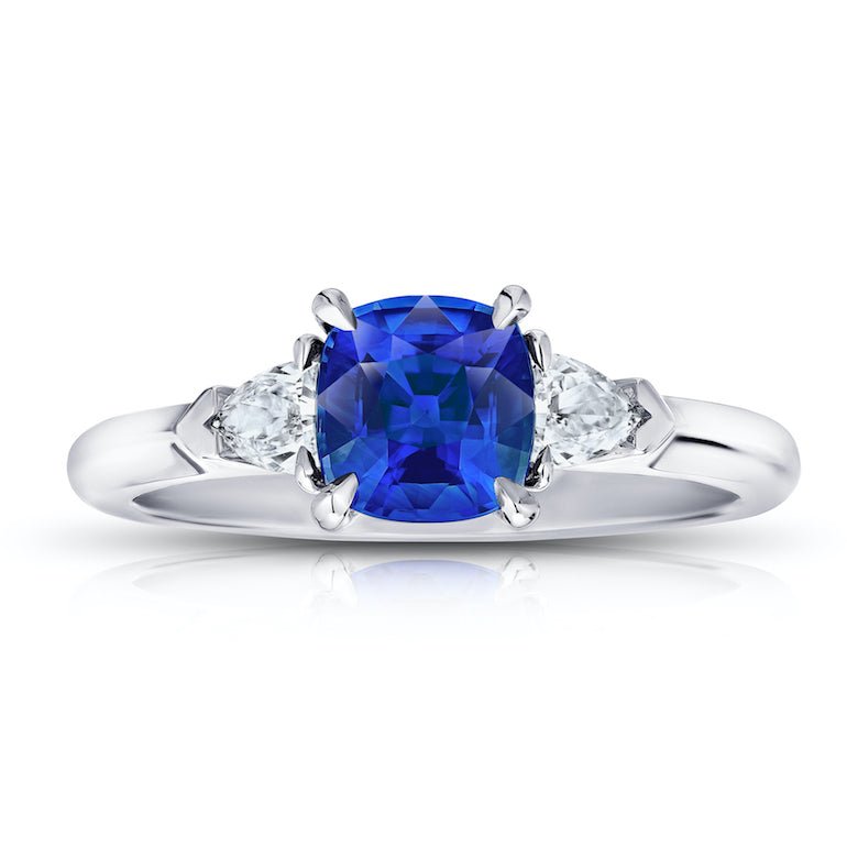 Details1.47 Carat Cushion Blue Sapphire with 0.31 diamonds set in Platinum Ring