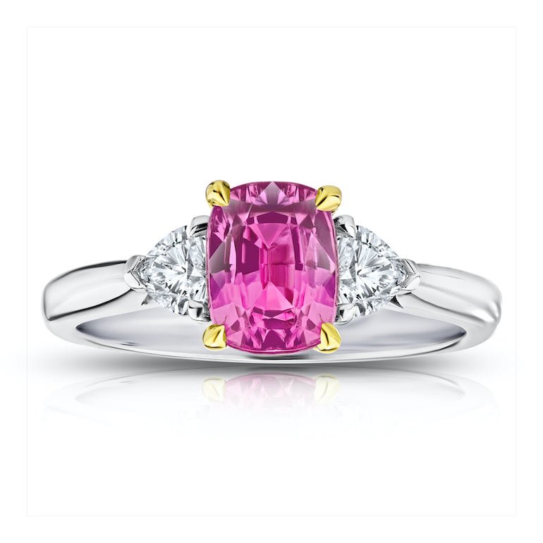 Details1.87 Carat Cushion Pink Sapphire with 0.39 Carat Diamonds set in a Platinum Ring