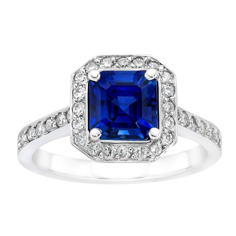 Details2.06 Carat Cushion Blue Sapphire with 0.40 Carat Diamonds set in a Platinum Ring |