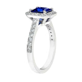 2.06 Carat Cushion Blue Sapphire and Diamond Platinum Ring