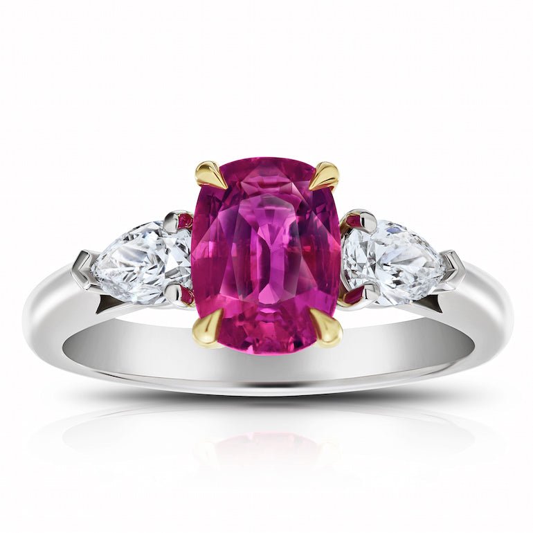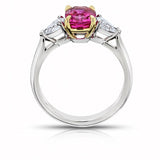 2.16 Carat Cushion Pink Sapphire with 0.58 diamonds set in a Platinum Ring