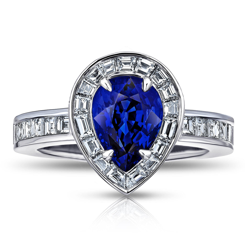 2.73 Carat Pear Shape Blue Sapphire And Diamond Ring