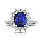 3.00 Carat Cushion Blue Sapphire and Diamond Platinum Ring