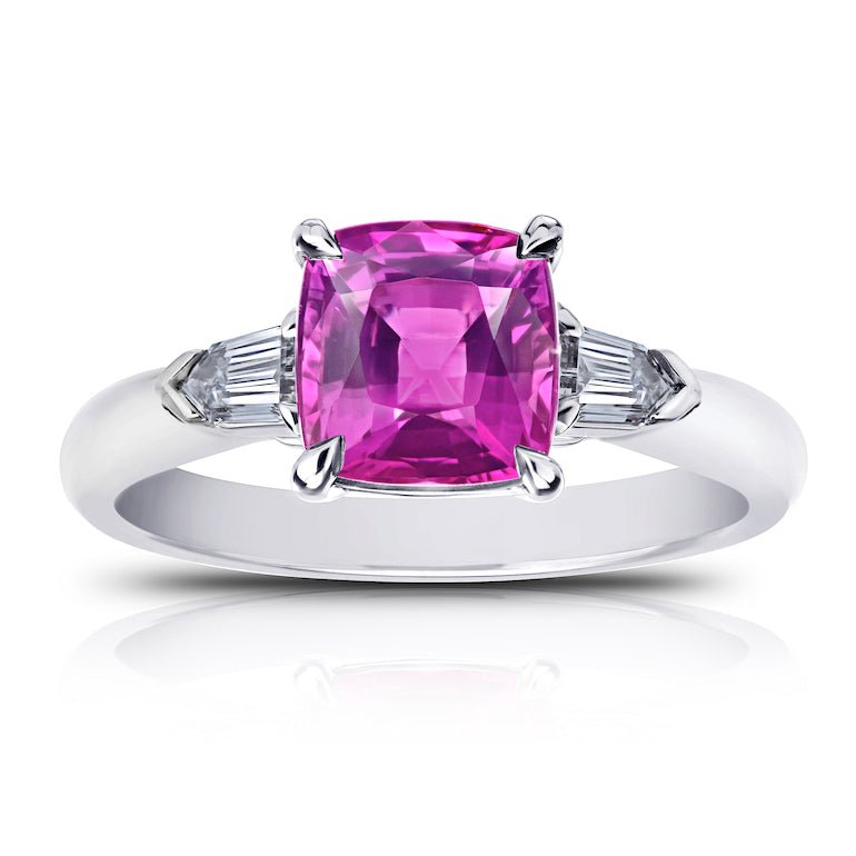 Details3.01 Carat Cushion Pink Sapphire with 0.34 diamonds set in Platinum Ring