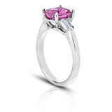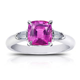 3.01 Carat Cushion Pink Sapphire with 0.34 diamonds set in Platinum Ring
