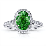 Details3.02 Carat Oval Green Tsavorite with 0.46 Carat Diamonds set in Platinum Ring |