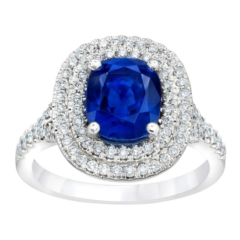 Details3.03 Carat Cushion Blue Sapphire with 0.84 Carat Diamonds set in a Platinum Ring |