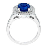 3.03 Carat Cushion Blue Sapphire and Diamond Platinum Ring