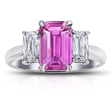3.03 carat emerald cut (no heat) pink sapphire ring with diamonds weighing 1.07 carats
