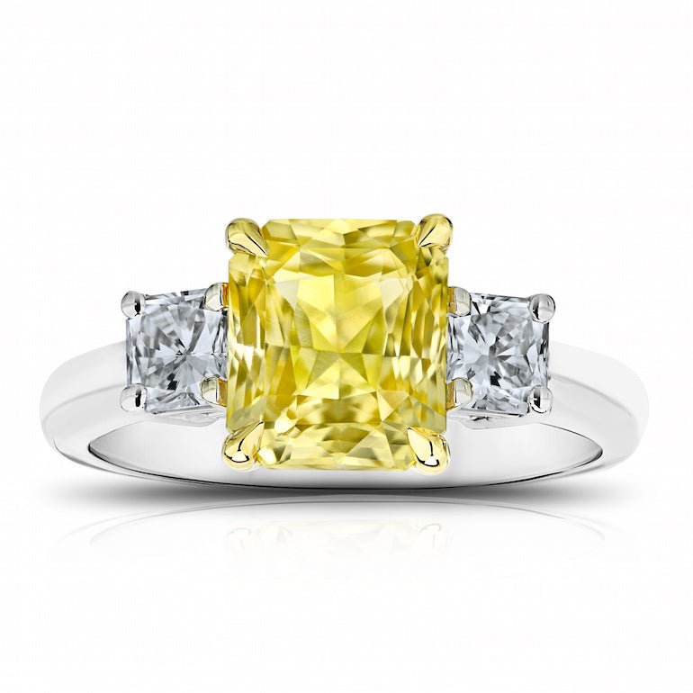 3.14 Carat Rectangular Modified Brilliant Yellow Sapphire and Platinum Diamond Ring