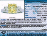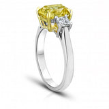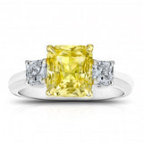 3.14 Carat Rectangular Modified Brilliant Yellow Sapphire and 0.65 diamonds set in Platinum Ring