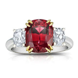 3.29 Carat Cushion Red Spinel with 1.07 Carat set in Platinum Ring