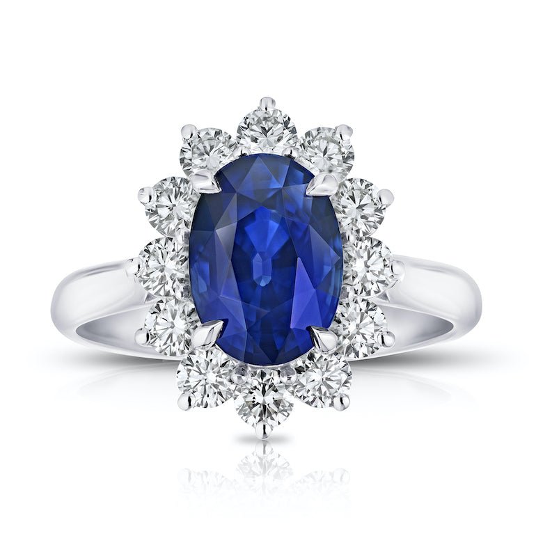 3.35 Carat Oval Blues Sapphire and Diamond Platinum Ring