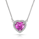 1.62 Carat Pink Heart Shape Sapphire white gold Pendant with total diamond weight of 0.10 carats