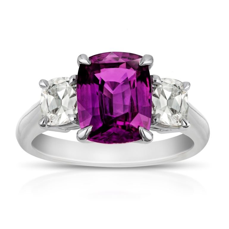Details3.43 Carat Cushion Purple Sapphire with 0.89 Carat Diamonds set in a Platinum Ring |