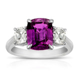 3.43 Carat Cushion Purple Sapphire with 0.89 Carat Diamonds set in a Platinum Ring