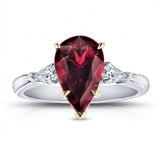 Details3.73 carat pear shape red burma spinel with shield shaped diamonds .42 carats set in platinum & 18k yellow gold ring