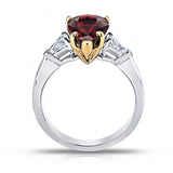 3.73 carat pear shape red burma spinel with shield shaped diamonds .42 carats set in platinum & 18k yellow gold ring