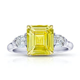 Details3.78 Carat Emerald Yellow Sapphire with side Diamonds set in a Platinum Ring |