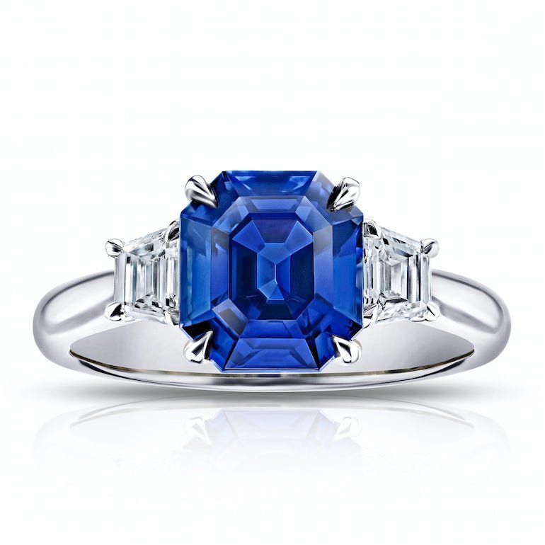 Details3.89 Carat Emerald Blue Sapphire with 0.52 Carat Diamond set in a Platinum Ring
