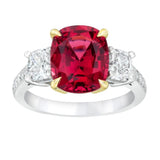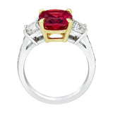 4.00 Carat Cushion Red Spinel and Diamond Platinum Ring