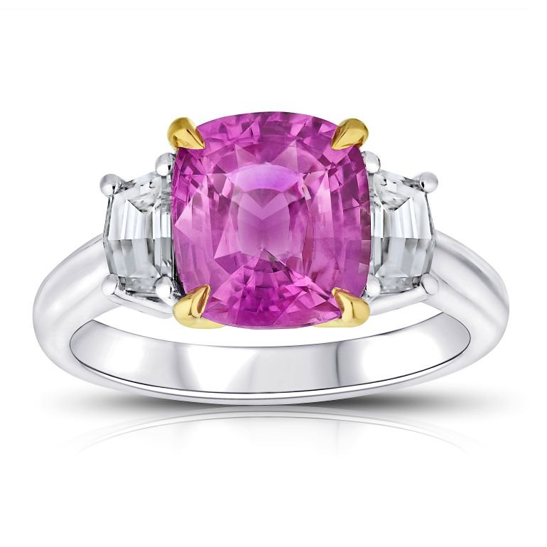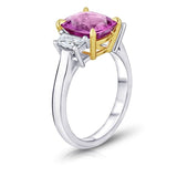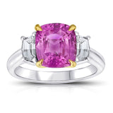 4.06 Carat Cushion Pink Sapphire and a Platinum Diamond Rings