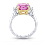 4.06 Carat Cushion Pink Sapphire and 0.69 carat diamonds set in Platinum Diamond Ring
