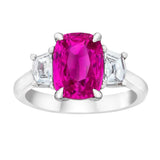 4.14 Carat Cushion Pink Sapphire and Diamond Platinum Ring