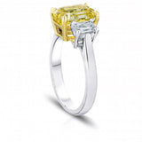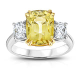 4.19 Carat Emerald Yellow Sapphire with 0.74 Carat Diamonds set in Platinum Ring