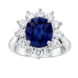 Details4.31 Carat Cushion Blue Sapphire with 1.28 Carat Diamonds set in a Platinum Ring |