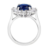 4.31 Carat Cushion Blue Sapphire with 1.28 Carat Diamonds set in a Platinum Ring