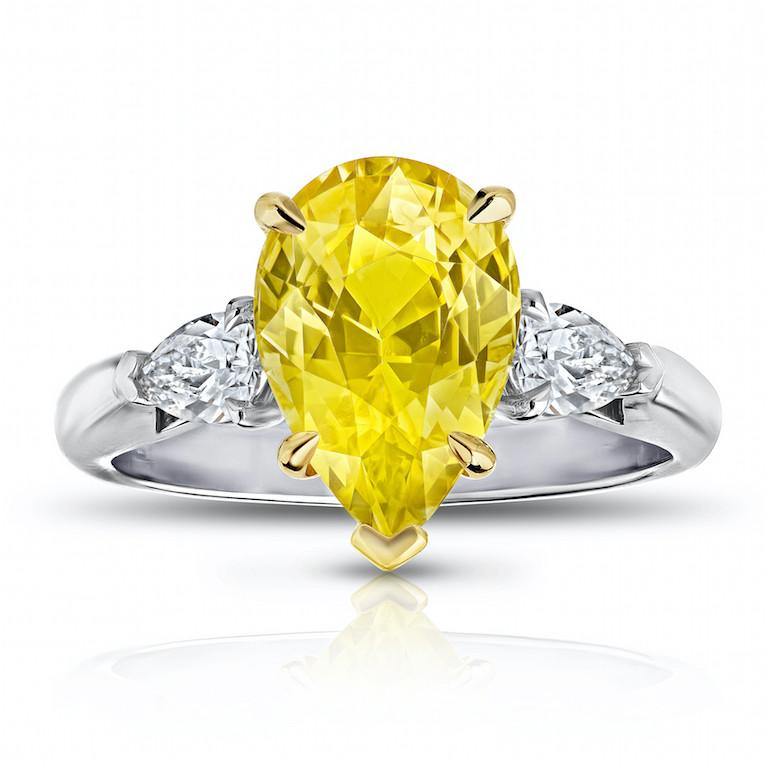 4.76 Carat Pear Shape Yellow Sapphire and Diamond Ring