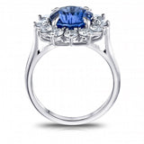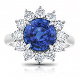 Details4.85 Carat Round Blue Sapphire with 12 diamonds 1.25 Carat set in a Platinum Ring