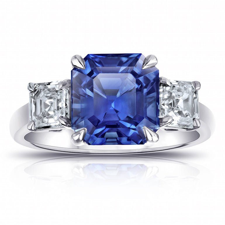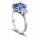 4.96 Carat Emerald Blue Sapphire and Diamond Platinum Ring