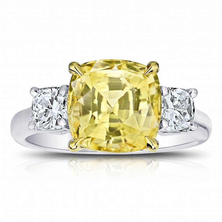 5.65 Carat Cushion Yellow Sapphire and Diamond Platinum Ring