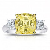 5.65 Carat Cushion Yellow Sapphire with 0.80 Carat Diamonds set in Platinum Ring