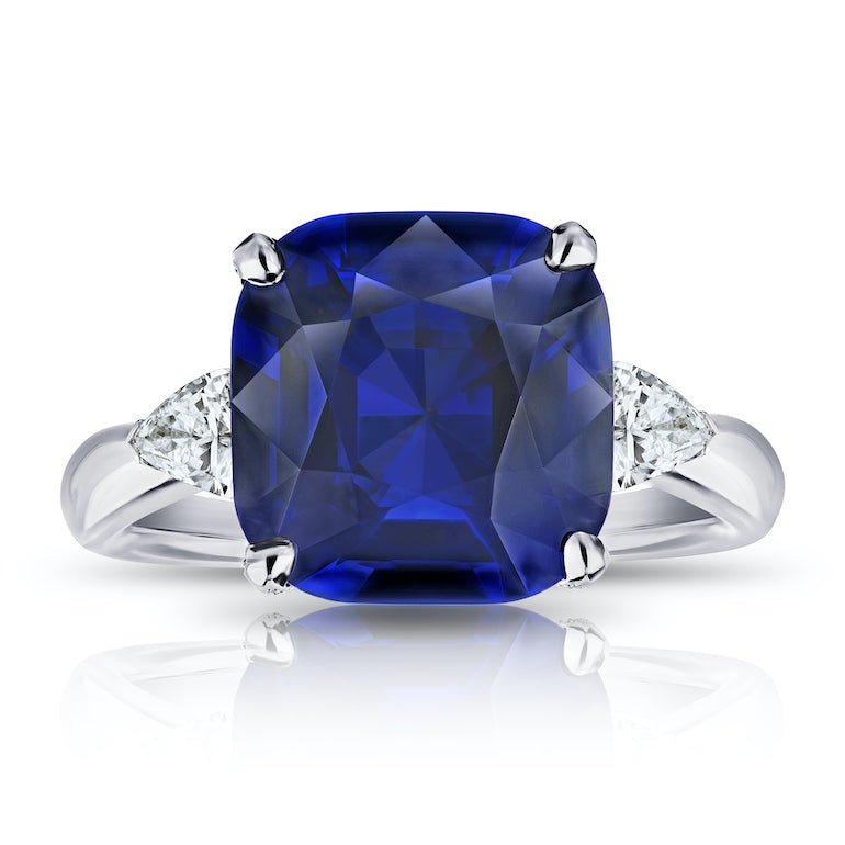 Details7.58 Carat Cushion Blue Sapphire with 0.75 Carat Diamonds set in a Platinum Ring |