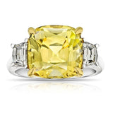 8.90 Carat Cushion Yellow Sapphire and Diamond Platinum Ring