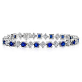 8.36 Blue Asscher Cut Sapphire and Diamond Platinum Bracelet