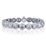 DetailsCustom designed bangle made in Platinum and 18k white gold set with 20 Lab Grown Diamonds weighing 40.79 carats with custom magnetic mechanism clasp. Every stone has a IGI report stating color as D-E clarity VVS-VS no florescence. All have a grade of "excellent" for cut, polish and symmetry. Designed and produced by David Gross, New York. |