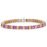 10.22 CT Princess cut Pink Sapphire and Yellow Diamond Bracelet
