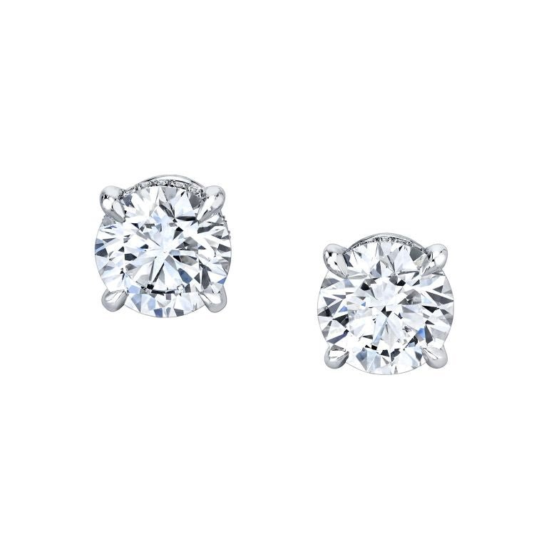 2.49 Carat Round White Diamonds ser in a Platinum Earrings