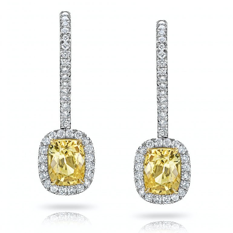 Details2.55 Carat Cushion Yellow Sapphire with 0.51 Carat Diamonds set in a Platinum and 18k Yellow Earrings |