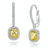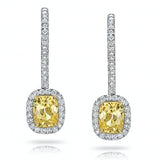 2.55 Carat Cushion Yellow Sapphire and Diamond Platinum Earrings