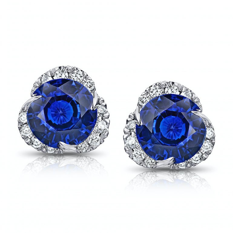 4.42 Carat Round Blue Sapphire and Diamond Platinum Earrings