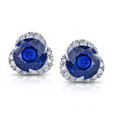 4.42 Carat Round Blue Sapphire with 30 Diamonds 0.38 Carat set in a Platinum Earrings