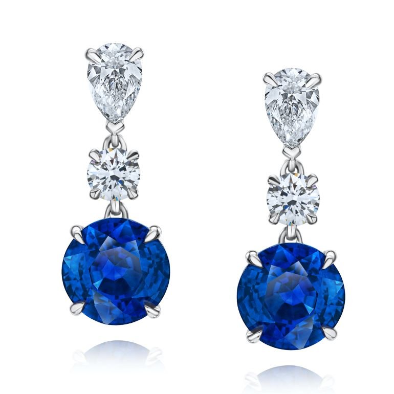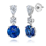 6.40 Carat Round Blue Sapphire and Diamond Platinum Earrings